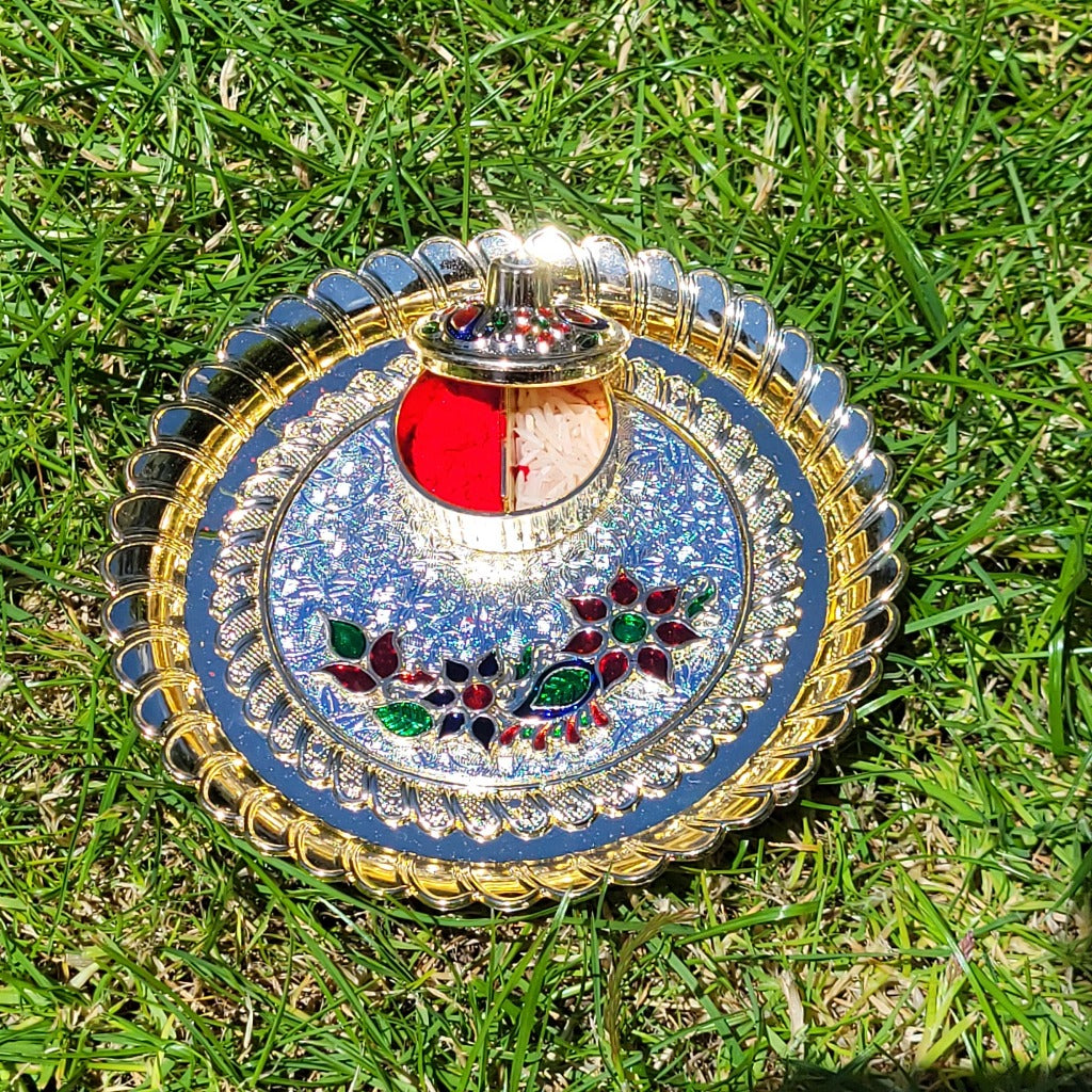Thali with kumkum and Rice Dibbi